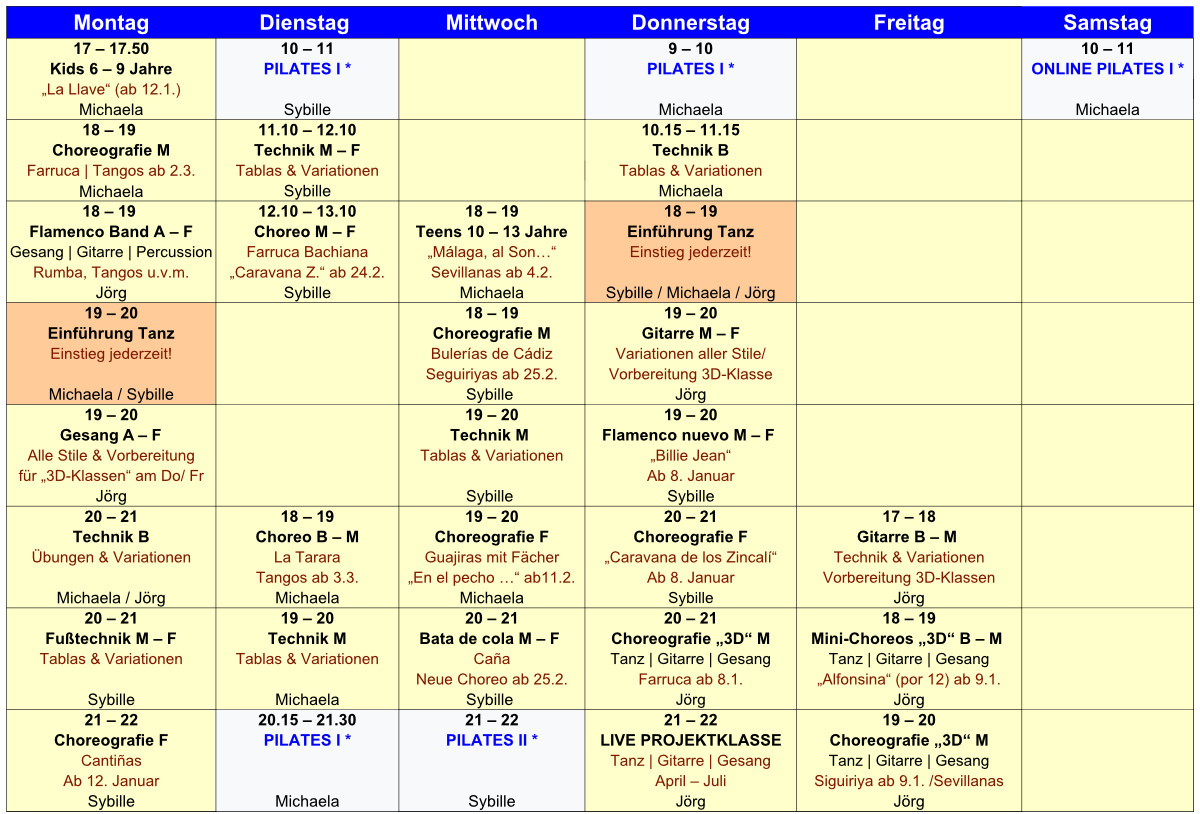 Montag, 21 Uhr/ Choreo F: Cantiñas/ Romeras/ Mirabrás ab 12. Januar